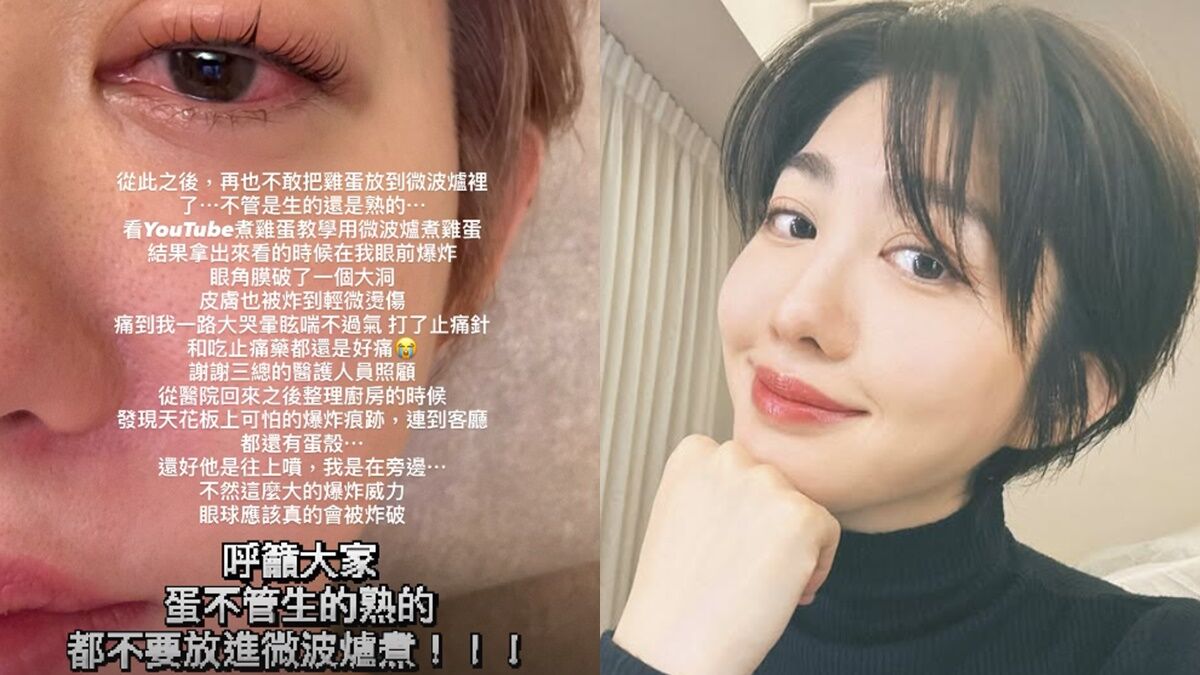王晴透露,她參考YouTube上的影片教學,嘗試用微波爐加熱雞蛋,沒想到剛拿出來時,就在她眼前突然爆炸,導致眼角膜破了一個大洞,皮膚還因此燙傷。為此,她形容當時的劇痛感讓她痛哭不止、頭暈目眩,甚至在打了止痛針、吃了止痛藥後,都無法緩解疼痛,她更無奈表示:「從此之後,再也不敢把雞蛋放到微波爐裡了⋯不管是生的還是熟的。」
