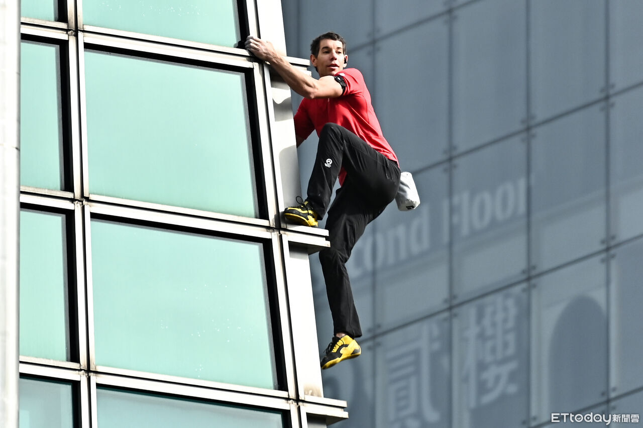 ▲霍諾德挑戰徒手攀登台北101。(圖/記者李毓康攝)