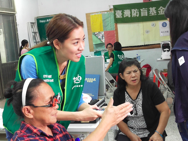 ▲劉伊心替年長者測視力。(圖/老虎牙子提供)