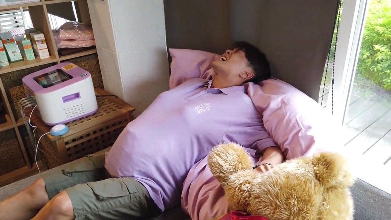 ▲許仁杰「分娩陣痛體驗」痛到飆淚。(圖/許氏夫妻提供)