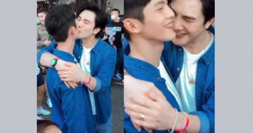 謝佳見與林輝瑝在戲裡代孕生子共組家庭,相比私下他與密友孫瑋廷傳情多年始終不認愛,昨倒是為宣傳新戲,大方公開在有十多萬人的遊行中親吻林輝瑝,兩人更穿同樣的白色上衣、牛仔外套營造情侶感,成功吸引民眾圍觀,兩人親吻時周遭也齊聲叫好,兩人熱情一吻後皆露出害羞表情,而林輝瑝更是一臉靦腆。
