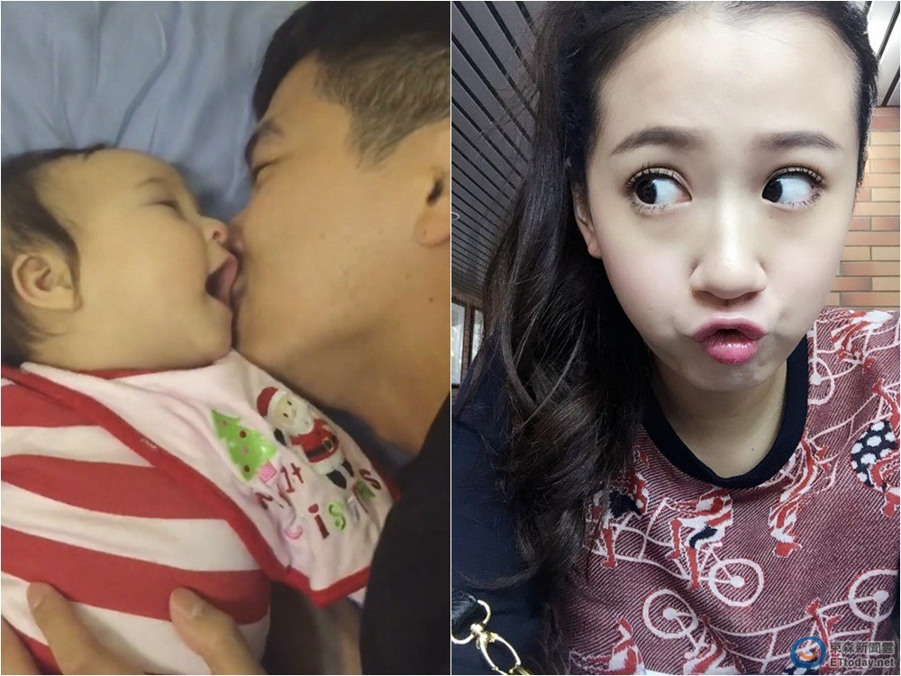 ▲楊銘威狂親女兒,被方志友拍下PO網,老婆留言卻被網友發現,似乎有點吃醋了。(圖/翻攝自方志友臉書)