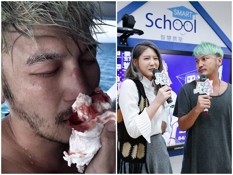 KID透露自己3月在澳洲拍攝《野人追夢》系列瘋狂行徑,潛水期間想在船上玩「後空翻」,結果因為自己愛耍帥加上船的地板又濕又滑,他一翻上去,「我整個人垂直上去、垂直下來!」碰一聲,他整個鼻子開始狂冒血,「旁邊的外國人看到嚇到,還以為我要死了!」