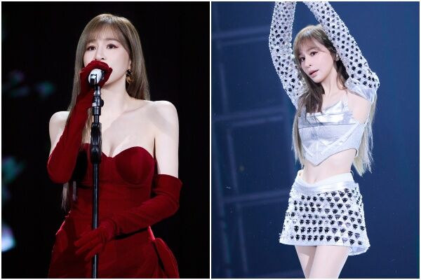 「甜蜜天后」王心凌今晚在小巨蛋開唱,此次「升級版」演出換了7套全新造型,既甜美又性感,開場的兩套服裝「Bite Back銀耀戰甲」和一襲玫瑰紅禮服,大秀吹彈可破的雪白肌膚,酥胸、筆直美腿、螞蟻腰全大放送,讓觀眾都看到目不轉睛。