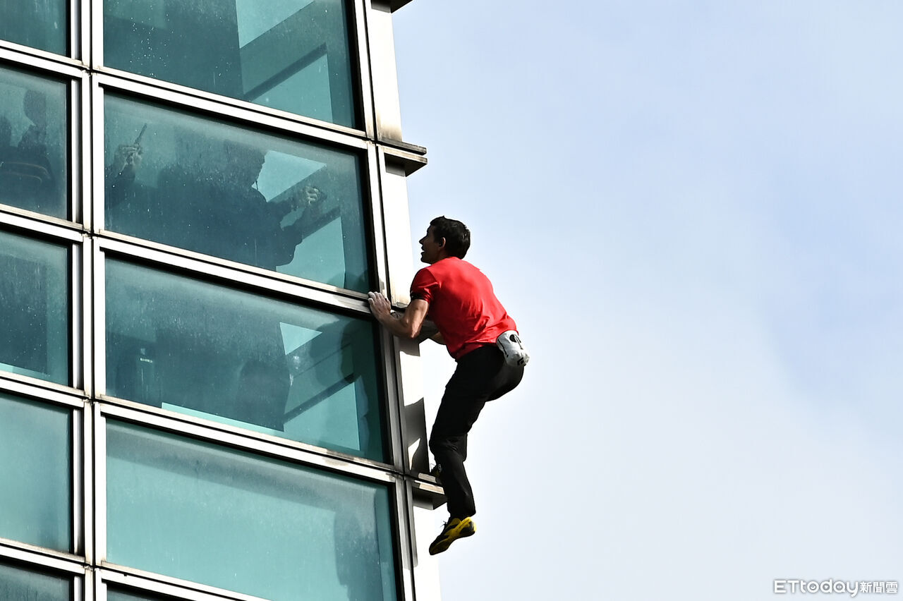 ▲美國自由攀岩名將霍諾德徒手攀登台北101。(圖/記者李毓康攝)