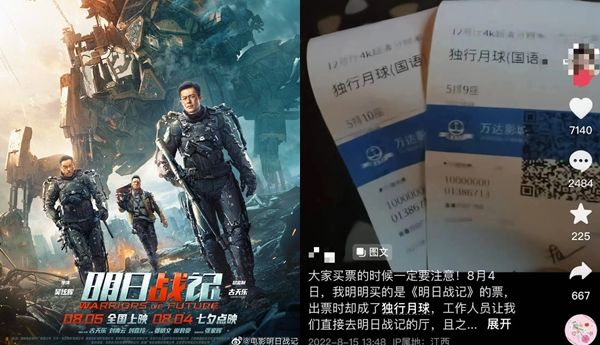 根據《香港01》報導,《明日戰記》在大陸上映後,票房不如預期,一部分網友指出是因為強碰《獨行月球》,排片量受到影響,但有大陸網友曬出電影票根,發現是片名經過塗改,疑似被近日大陸盛行的「偷票房」現象所害。據悉,近日大陸頻傳「偷票房」問題,例如觀眾購買《明日戰記》的票,但印出來的票卻是其他片名,工作人員再將片名手工塗改成《明日戰記》,雖然實際觀看的是《明日戰記》,但票房收入卻會被計入一開始印出來的電影。
