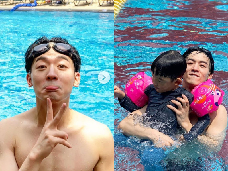 小樂露出好身材,在水中開心抱著飛飛翔翔,歌迷紛紛留言,「小樂這身材我可以」、「這麼小就有一位吳哥哥陪你長大真好」、「飛飛翔翔好像蠻小的時候爸爸就教他們游泳了。」