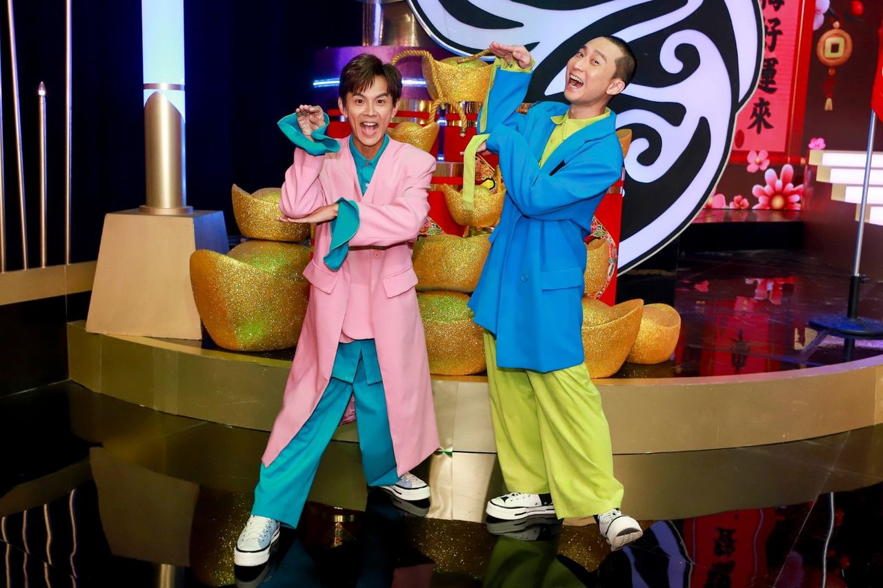 由20位崇右同學戴上桃紅色手套,浩翔一起配合手勢動作,整齊劃一帶來舞蹈動作,最後由9歲的NANA炫技地板動作,浩角翔起說:「距離上次我們在《民視第一發發發》合體舞蹈演出已經6年前了」,難得再度合體讓浩子說:「錄影過程中我看到電視畫面,自己都好期待除夕夜看到節目」,兩個人忙碌行程光是練舞就是一個浩大工程。