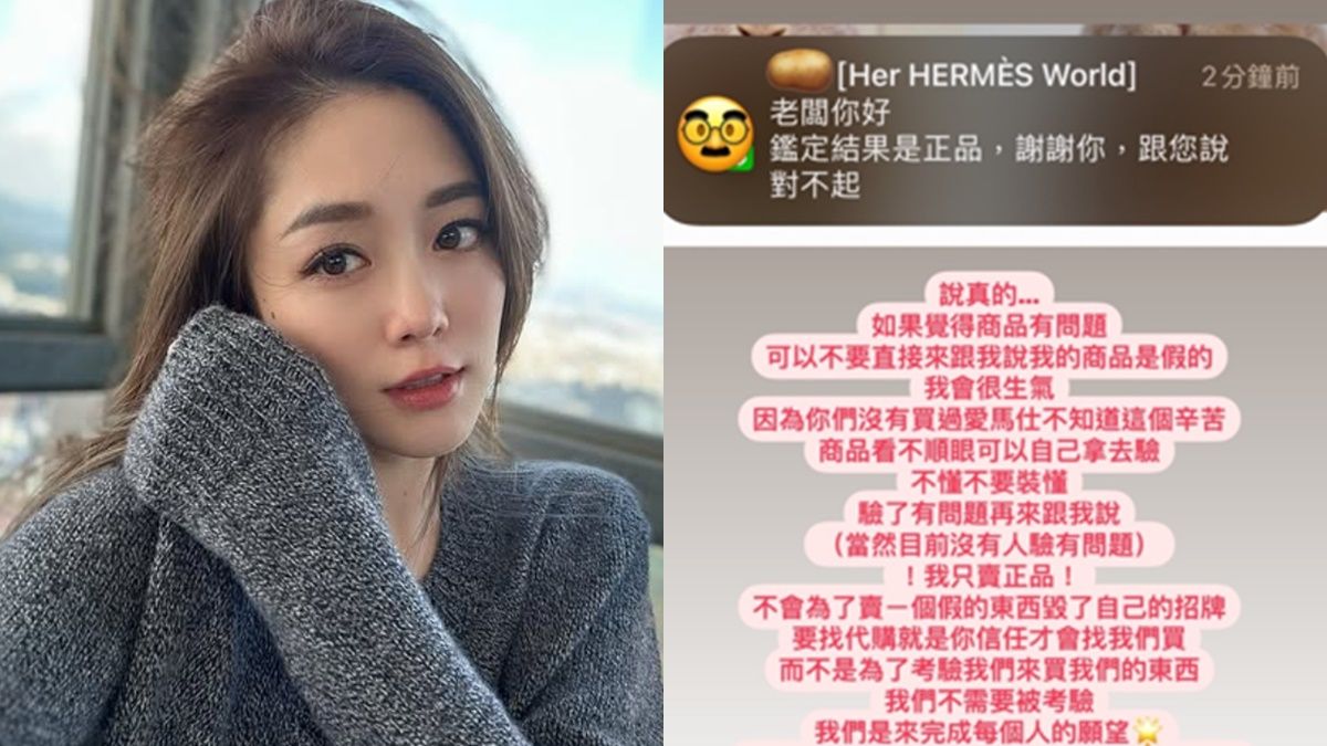 女星林千又平時忙於精品代購,私下仍會透過社群記錄生活,不吝嗇與粉絲分享日常,最近她在IG限動曬出截圖透露,有客人私訊她質疑代購的愛馬仕真偽,讓她感到有些不滿,「商品看不順眼可以自己拿去驗,不懂不要裝懂,我只賣正品!」