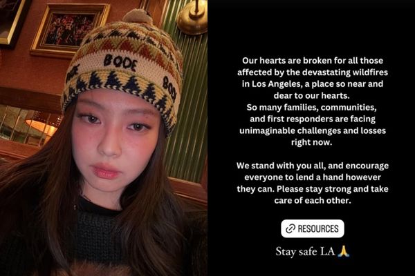 Jennie於11日在個人Instagram限時動態中發文表示:「想到洛杉磯這個對我們來說如此親近且珍貴的地方,還有因毀滅性的野火而受災的所有人,真的讓人感到心痛。」她接著寫道:「許多家庭、社區以及救援人員正面臨難以想像的困難與損失。我們與你們同在,希望大家都能盡自己所能伸出援手。請加油,並好好照顧彼此。」