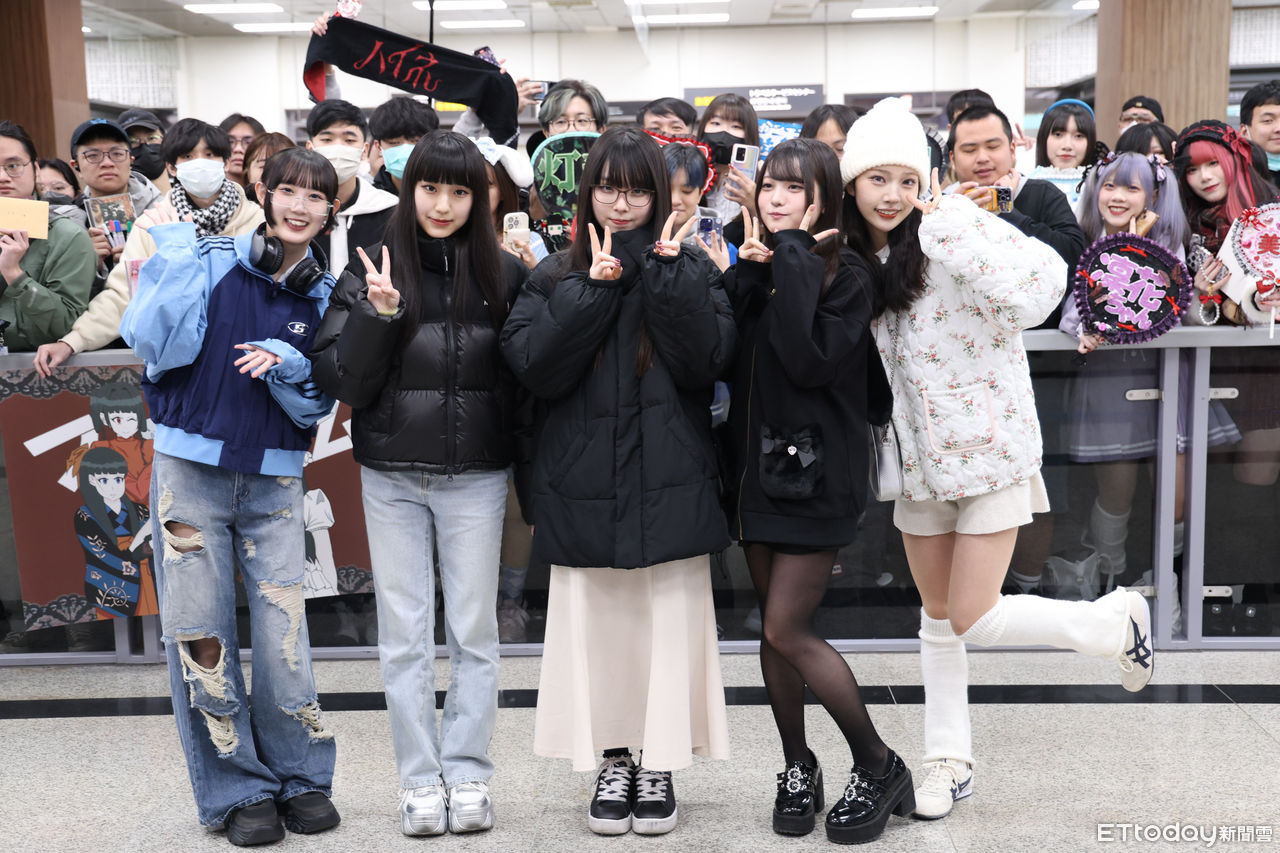 Phantom Siita由日本當紅神秘歌姬Ado打造的5人團體,不走甜美偶像路線,而是以復古恐怖風格打響知名度。她們15日抵台,驚訝眾多歌迷到場接駕,用日文驚呼著「哇好厲害」,比著臉頰愛心與歌迷互動,更親切地轉到歌迷方向與之合照。