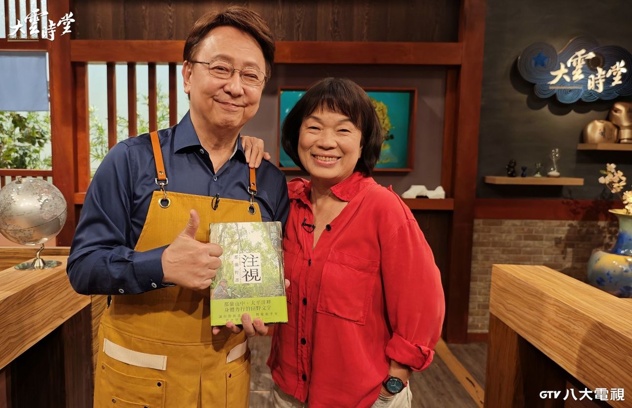 ▲《大雲時堂》主持人李四端(左)和節目來賓龍應台。(圖/八大提供)
