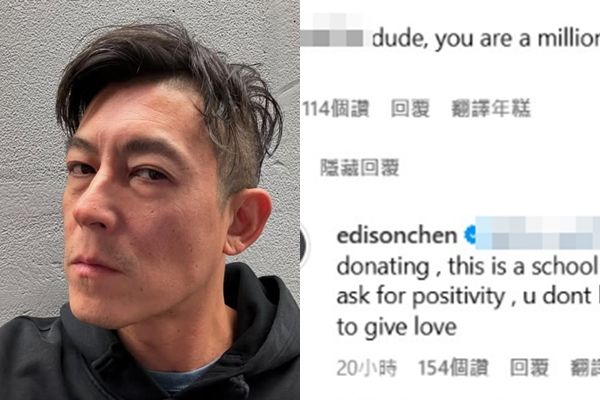 面對質疑,陳冠希回應表示:「我已經捐款,並會繼續捐款。這是學校的倡議,也是對正能量的一次呼籲。你不必捐款,只需要傳遞愛。」不過,他對於其中一位留言說「You deserve this(你活該)」的網友相當不客氣,批評對方的外貌之餘,還呼籲他的僱主不要聘用這類人。