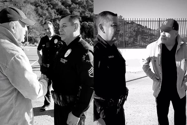 17日凌晨,布魯斯威利和妻子在Instagram上發布了一段黑白影片,畫面中,布魯斯戴著紐約洋基隊的帽子,穿著一套休閒夾克,與多名警察握手並合影。他的神情看起來相當專注,雖然他並未開口說話,但從他的表現來看,依然能感受到他對現場情況的關注。影片中的布魯斯威利和員警們的互動,展現了他對這些救災人員的感激與尊敬。