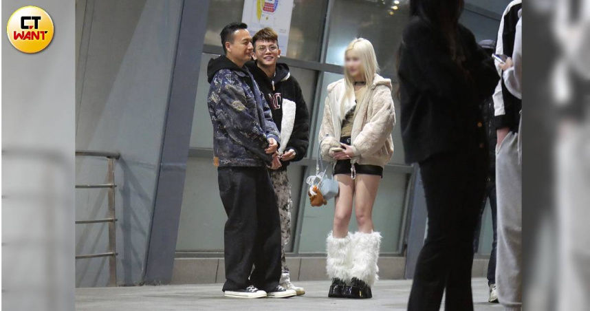 ▲孫生帶著一位金髮女伴現身小巨蛋,巧遇演藝圈前輩小鐘。(圖/本刊攝影組)