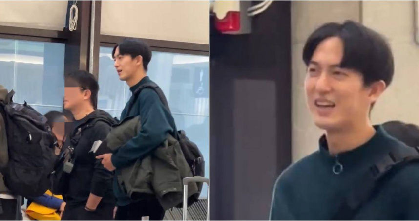 ▲讀者在桃園機場捕獲野生邱昊奇,旅伴清一色是男性,此行看來是差旅工作。(圖/讀者提供/CTWANT)