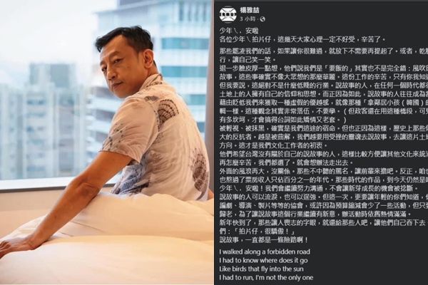 ▲楊雅喆發文鼓勵年輕影視工作者。(圖/翻攝楊雅喆臉書)