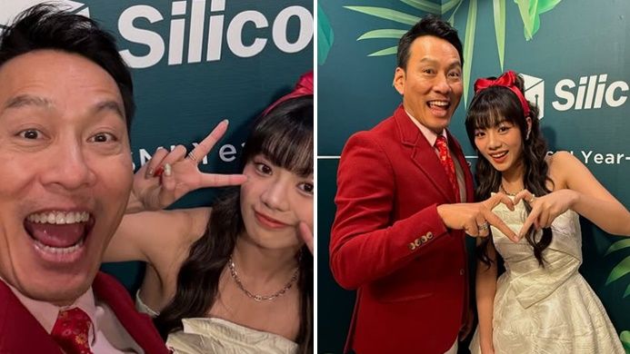 ▲艾力克斯和木木一起主持慧榮科技的尾牙。(圖/翻攝自Instagram/taiwanhappyfamily)
