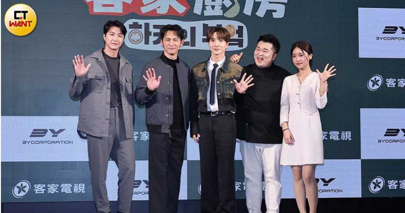 ▲江宏傑(左起)、温昇豪、利特、李元日、Judy,一同出席《廚師的迫降:客家廚房》記者會。(圖/楊澍攝)