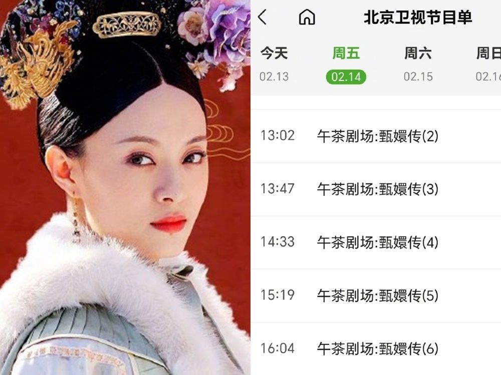 ▲被電視停播將近6年,大陸觀眾分享節目表,發現北京衛視開始重播《後宮甄嬛傳》。(圖/翻攝自微博)
