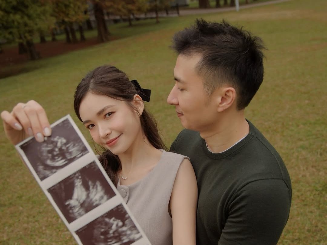 韓笙笙發文:「我們要當爸爸媽媽啦!Can’t wait to meet our little one.」貼文中曬出多張合照,包括她被老公摟在懷中,雙手秀出超音波照,臉上掛著燦爛笑容,與老公牽手互動甜蜜,喜悅之情溢於言表。