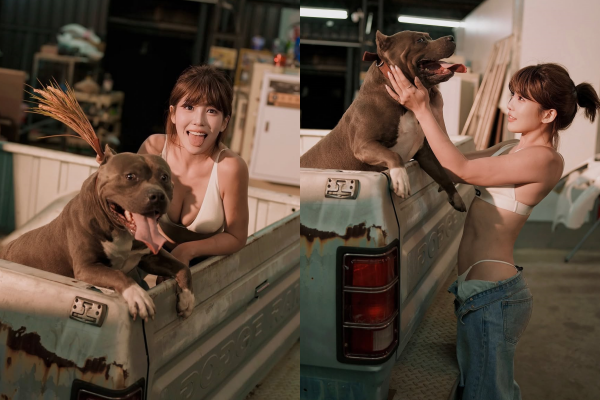 照片中,壯壯站在卡車旁,逗弄著卡車上的惡霸犬,畫面相當溫馨。接著她也坐到了卡車上,環抱起了惡霸犬,並且學著狗狗做出吐舌模樣,顯得十分的逗趣。她也配文寫道「明天是什麼情人節!?應該跟我們這些單身狗沒什麼關係吧」。