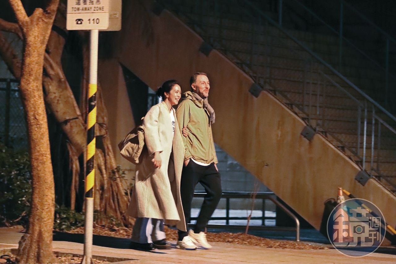 ▲2/19 00:54 大霈(左)和名導老外男友(右)喝完小酒後,緊緊勾著對方,沿著街巷散步。