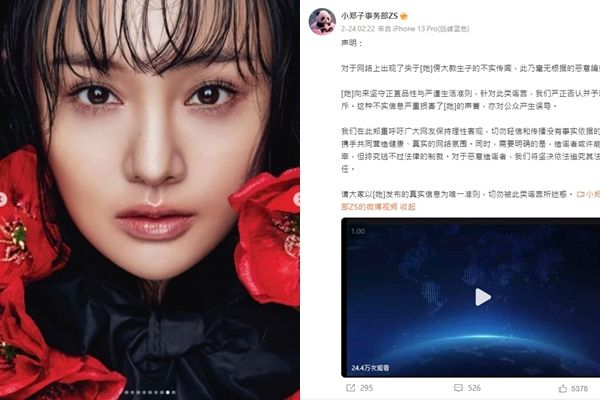 ▲鄭爽工作室發文澄清,否認謠言。(圖/翻攝自微博)