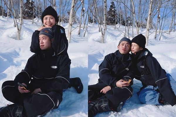 林萱瑜在Instagram曬出了一組她與Junior在雪地上的合照,畫面裡兩人都穿著深色的防寒套裝,並配戴著毛帽。Junior盤腿坐在雪地,林萱瑜則靠在他的身後,用雙手抱住老公的頭,露出幸福的笑容,看起來相當甜蜜。下一秒,林萱瑜坐到了Junior的身旁,並將臉貼向對方,做出嘟嘴表情,顯得十分可愛。