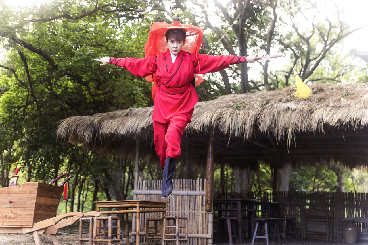 ▲《火車來去》安心亞拍攝數次被鋼絲吊著飛,下戲後大喊吃不消。(圖/公視台語台、華視提供)