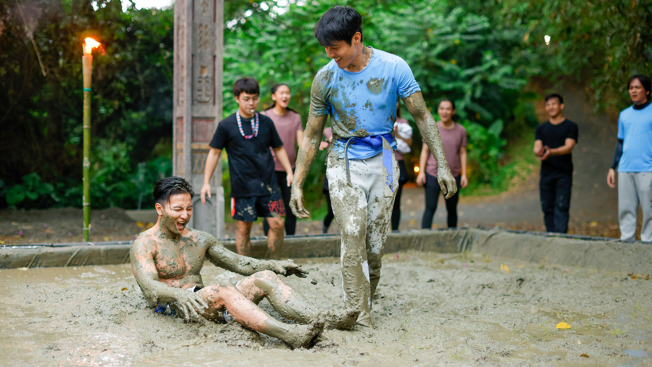 到終極挑戰「泥漿角力戰」,大家一看到泥漿場域,下巴掉下來直喊:「這是來真的!?」第一回合由胡宇威對上楊奇煜,小煜一開場就霸氣脫掉上衣給足下馬威,兩位帥哥比賽過程中,火力全開,場面超激烈!不畏懼滿身泥巴,拚得你死我活。