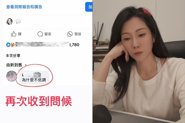 KIMIKO 6日透過臉書發文,透露昨天又再次收到「問候」,直言「這並非普通的關心,而是一封隱藏在網路背後的威脅信,明確要求我『低調點』這種『問候』不是善意而是警告,甚至是一種心理戰術。」這名匿名警告她的人,得意宣稱因為臉書的匿名性,警方無法追蹤,他們的目標是逼KIMIKO關閉所有公開帳號,徹底消失在網路世界。