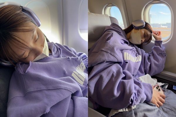 河北彩伽上(2)月來台舉辦見面會,並在社群平台X發文感謝台灣的粉絲,寫道「感謝台灣的你們這三天辛苦付出」,還附上了自己在飛機上熟睡的照片。照片中,她戴著紫色耳罩式耳機,穿著破洞造型的紫色帽T,倒在飛機座位上沉沉睡著,雖然臉上戴著口罩,但依然散發出女神氣質,讓粉絲們瞬間融化。