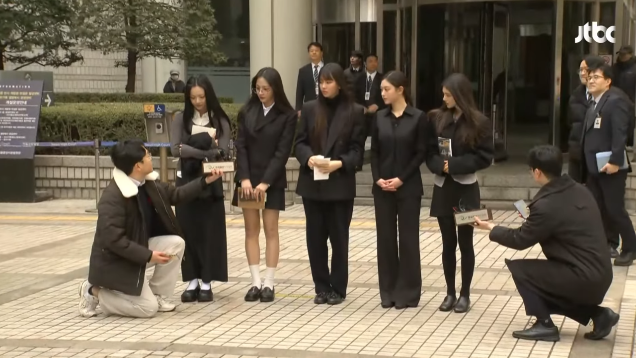 ▲NewJeans親自出庭。(圖/翻攝自YouTube/JTBC News)
