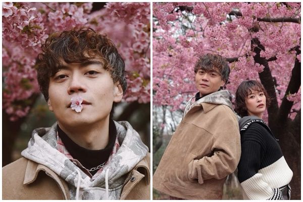 ▲Ryu與網紅「小貓Rui」一起在櫻花樹下嬉戲。(圖/翻攝自Instagram/ryuuu0409)