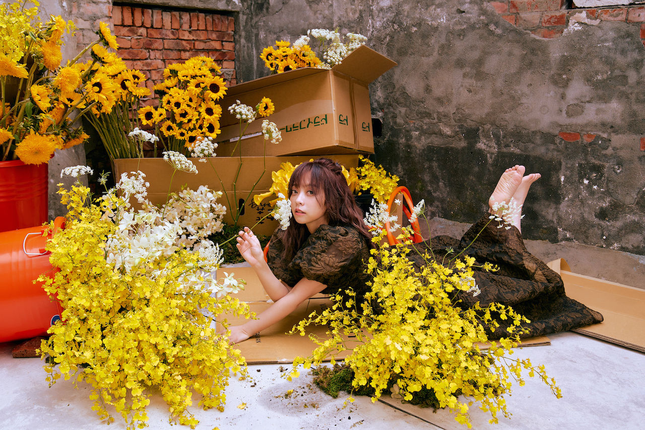 為了以全新面貌與粉絲見面,龍龍特別與全新團隊攜手合作,並親自參與企劃的每個細節。她試穿了超過十套服裝,最終挑選了一件精緻優雅的連身小禮服,妝髮團隊則為她打造甜美的小公主造型。而在視覺設計上,美術團隊特地一大早前往花市,精心採購大量鮮花,然而,拍攝場景卻選在一處尚未完工的工地,並刻意搭配大水桶、水管、破紙箱作為佈景,營造強烈的視覺反差。
