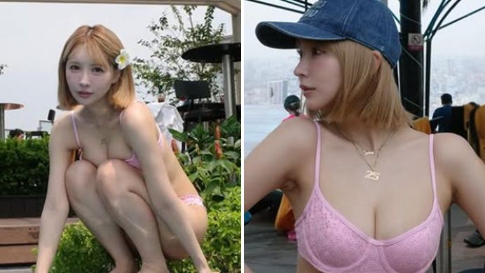 照片中,可以看到三上悠亞時而戴起牛仔棒球帽,時而直接頂著中分的肩上短髮。她大方在戶外秀出粉紅色泳衣,辣露豐滿北半球和深邃事業線,下半身搭配荷葉邊三角泳褲,展現筆直長腿。