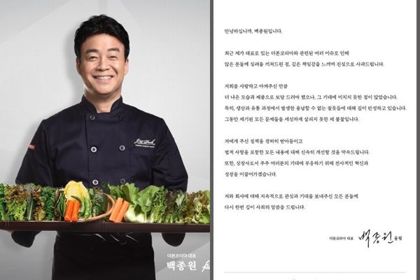 南韓知名企業家、廚師白種元,旗下擁有多個餐飲品牌,在參與《黑白大廚》後,身價更是水漲船高,近日他一連爆出牟利、標示不清、違反法律規定等醜聞,迎來成名後的最大翻車風波,作為公司「The Born Korea」的老闆,近日被因違反《原產地標示法》遭警方刑事立案,對此,他也終於公開發表聲明道歉。