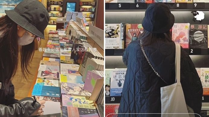 從Instagram限時動態中,可以看到柯佳嬿戴著黑色漁夫帽和杏色口罩,身穿黑色寬鬆外套,背著米色包包,打扮得相當簡約,低調現蹤誠品書店觀察暢銷榜。
