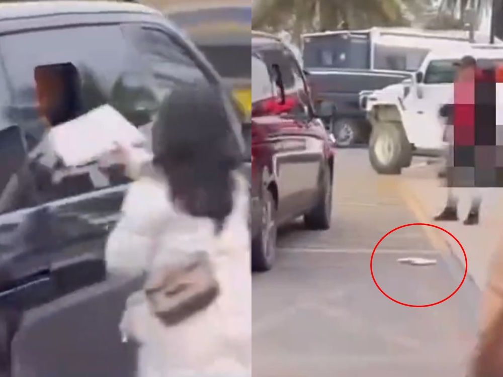 ▲粉絲把信遞進張頌文車子,隨後信被丟出車窗。(圖/翻攝自微博)