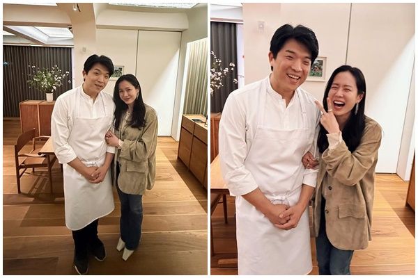 孫藝真同時也配上了與安成宰主廚的合照。畫面中孫藝真放下一頭長髮,身穿卡其色的西裝外套,下身搭配牛仔長褲,渾身散發出優雅氣質。一旁的安成宰則穿著白色襯衫與白色圍裙,靦腆地對鏡頭微笑,孫藝真也將手勾著安成宰,親切地與主廚合影。