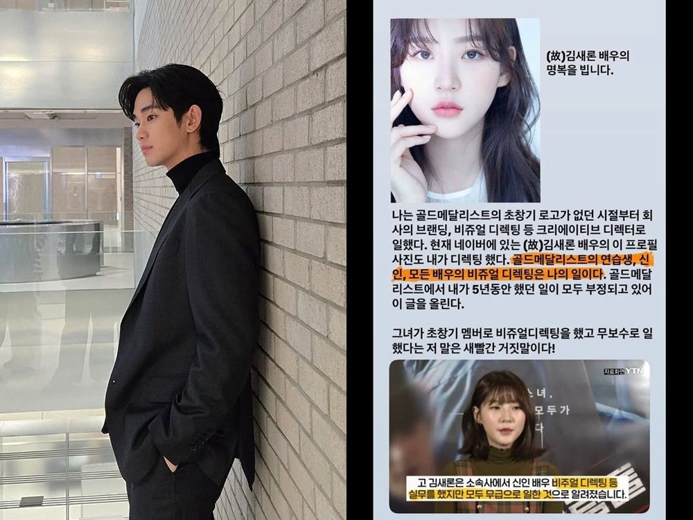 已故南韓女星金賽綸生前與金秀賢的秘戀,以及與公司的債務問題一一被公開,已經成為國際關注話題,其家屬曾透過YouTube頻道《橫豎研究所》爆料,她在前經紀公司Gold Medalist期間,曾無償為新人指導、視覺指導及相關業務等工作。但該公司另一位前員工在網路發聲,指出「練習生、新人、所有演員的視覺形象設計,都是我的工作」,並痛喊自己的努力被否定了。