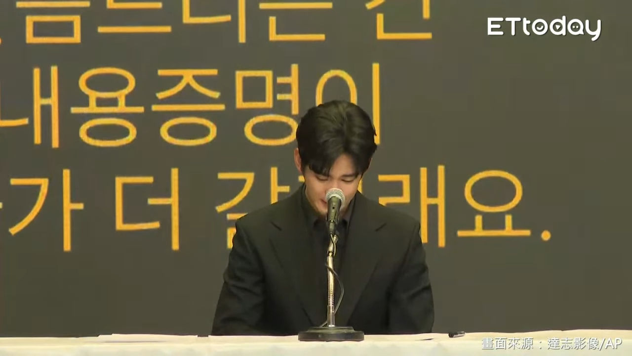 ▲金秀賢31日召開記者會。(圖/達志影像/AP)