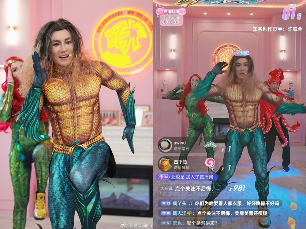 藝人劉畊宏昨日深夜發文,指出在健身直播時遭到「強制關播」,而當時有10萬人在線上。他當時Cos海王造型,跳到一半畫面變黑,為此喊冤發文:「我的直播間一直傳播健康的正能量,都快4年了,我不是第一天直播啊⋯⋯!」