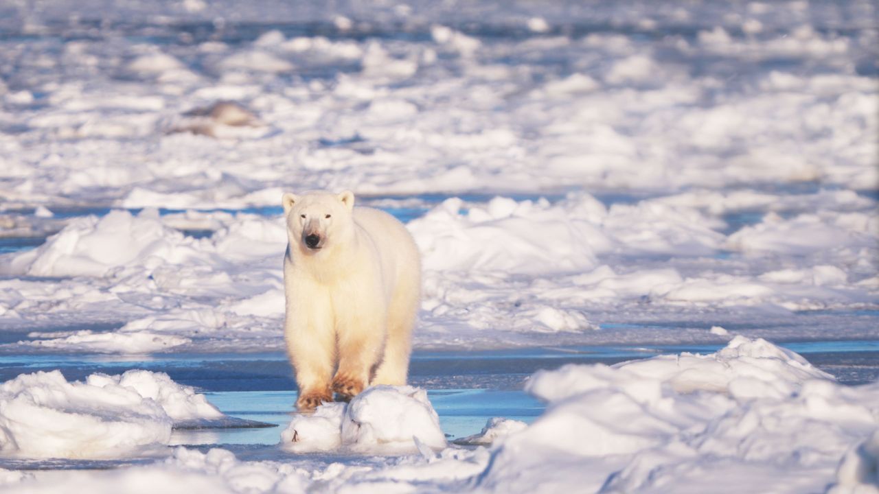 ▲《守護我們的星球》片段,北極熊站立於僅存的冰層。(圖/東森電視提供)