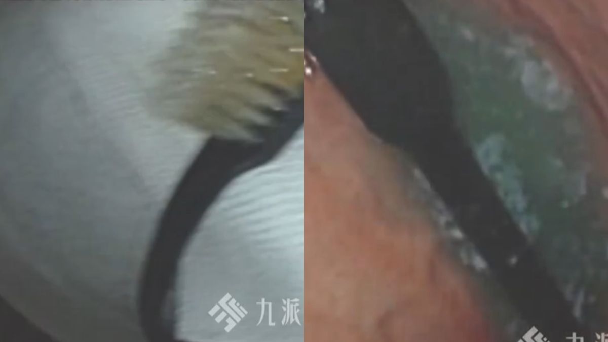 ▲大陸網紅把整根牙刷吞下去。(圖/翻攝自微博/九派新聞)