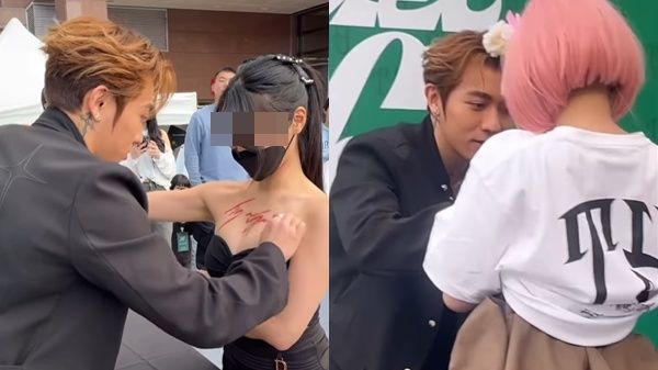 從Tyson Yoshi轉發粉絲上傳的現場影片可見,一位粉紅髮色、身穿超短裙的女粉絲在台上掀起白色T恤,請Tyson Yoshi在其胸前簽名;另一位穿著黑色無肩帶洋裝的女粉絲則全程低頭,安靜地請偶像簽名。Tyson Yoshi簽名時表現相當紳士,特別小心地抬高手,避免身體接觸,展現出體貼與專業的態度。