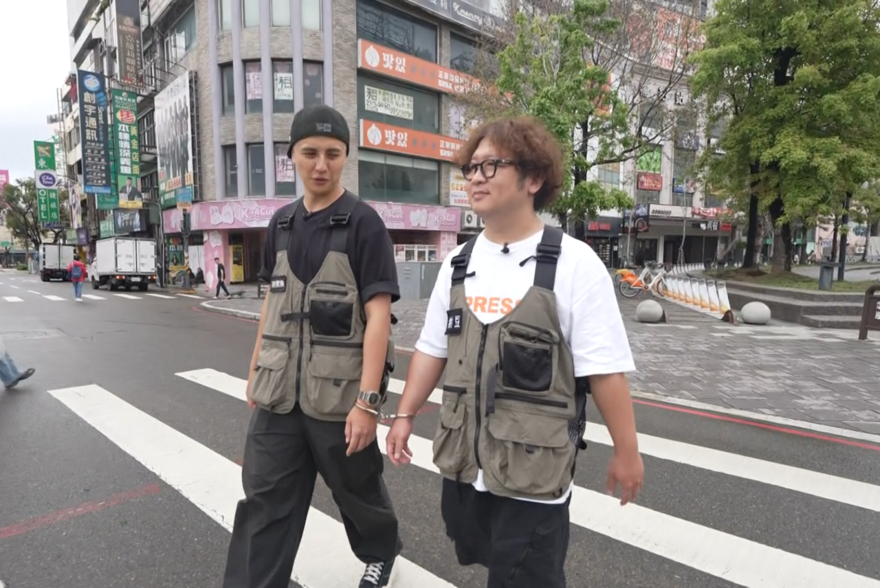▲納豆(右)跟曾子余被銬在一起。(圖/TVBS)