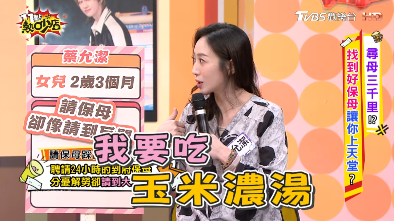 ▲蔡允潔被保母要求深夜去買玉米濃湯。(圖/翻攝自YouTube/11點熱吵店)