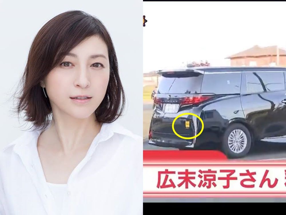 ▲網友發現廣末涼子搭乘車輛,貼著黃色貼紙顯示來自租車公司。(圖/翻攝自X)